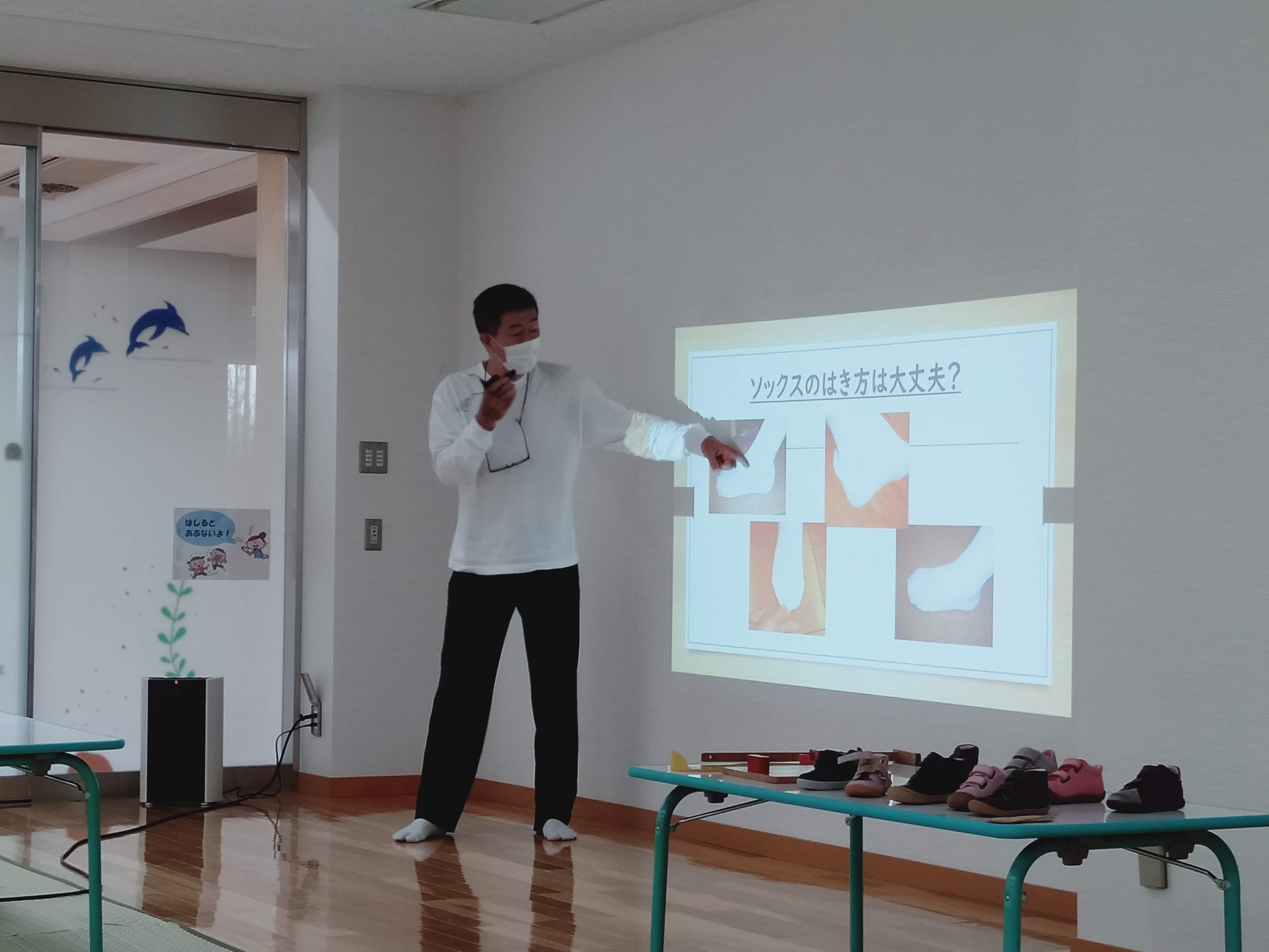 今回は0歳~1歳児をお持ちの親子さんに向けて足と靴のお話を行いました。